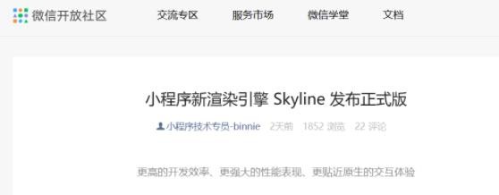 微信開放社區官方人員日前宣布,微信小程序新渲染引擎 Skyline 已發布正式版,進一步提升小程序的渲染性能和體驗。