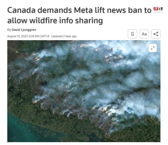 據路透社報道,加拿大政府要求 Meta 解除其平臺上禁止分享加拿大新聞的禁令,以允許人們分享有關西部山火的信息。