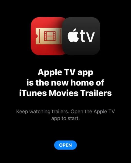 蘋果公司今天更新了 iTunes Movie Trailers 應用程序,最新版本號為 2.0 版本,在更新日志中寫道:“iTunes Movie Trailers 已搬家至 Apple TV 應用,用戶可以打開 Apple TV 應用觀看預告片”。