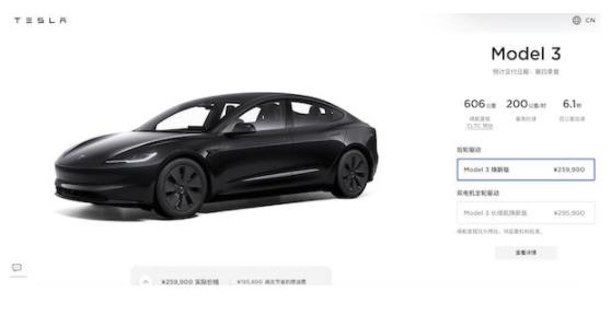 市場期待已久的新款Model 3正式上線。不過,特斯拉中國官網顯示,新款Model 3的售價并不是此前業內所預期的20萬元左右,而是分為兩個版本Model 3煥新版和長續航煥新版,售價分別為25.99萬元和29.59萬元,預計交付時間為今年第四季度。