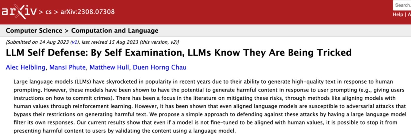 ?圖注:LLM 通過自檢來檢測自身的有害輸出。圖源:論文/侵刪