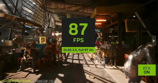 似乎是為了展示游戲性能,微軟特意拿來了即將在下周發行的《賽博朋克 2077:往日之影》來演示,在開啟 DLSS 3.5 后這款筆記本的幀數表現能超過 80 幀。