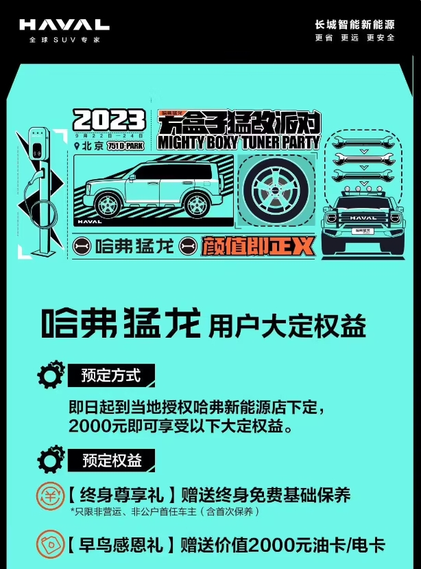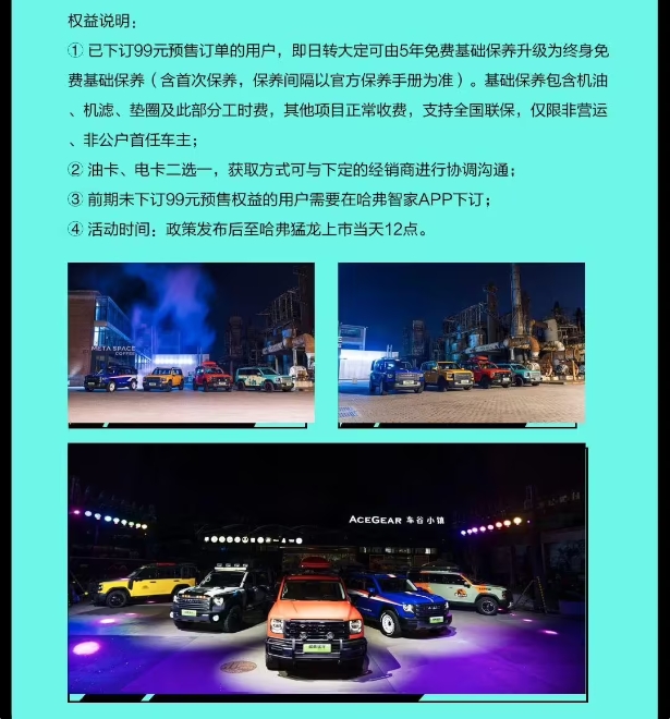 哈弗猛龍大定權益正式發布,即日起到當地授權哈弗新能源店下定,2000 元即可享受以下大定權益。
