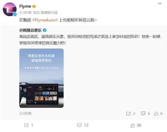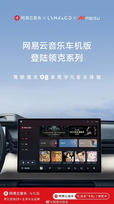 網易云音樂今日宣布,網易云音樂車機版登陸領克系列汽車,可以在魅族 Flyme Auto 車機上使用該 App。