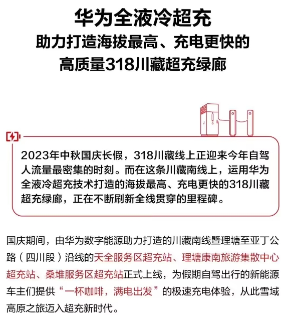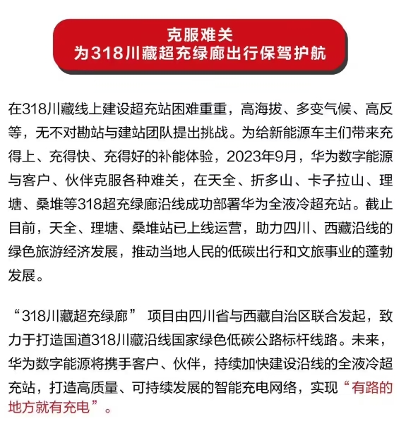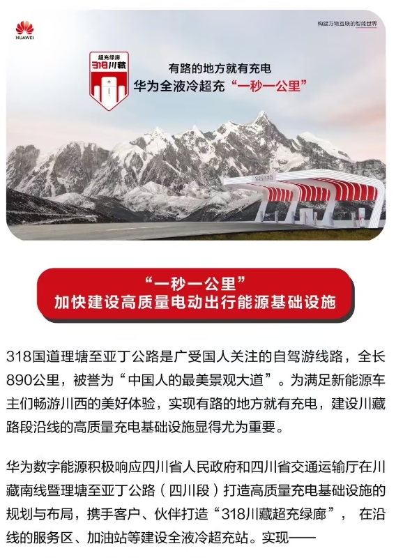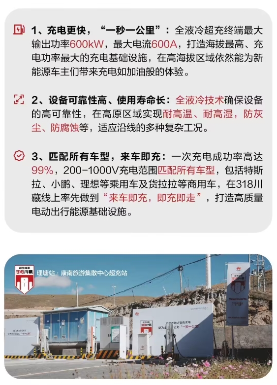 華為全液冷超充站在 318 川藏線理塘、桑堆等地上線,號(hào)稱一秒補(bǔ)充一公里續(xù)航 08:46:36