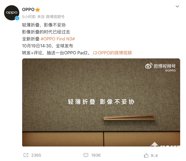 此前,OPPO已經官宣,將于2023年10月19日14:30正式發布全新的折疊屏旗艦OPPO Find N3。發布該產品前,OPPO頻頻給我們預熱該產品。