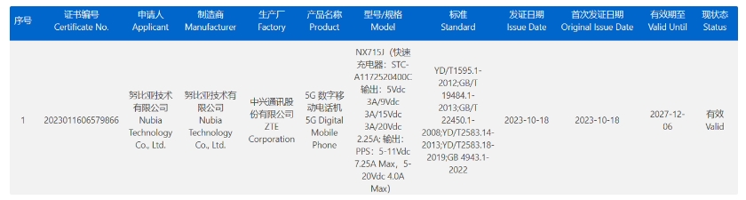 這款新機已經通過國家質量認證(3C 認證),配備功率為 80W 的充電器,首次發證日期為 2023 年 10 月 18 日。產品尾號“SE”通常代表比標準版機型更低一級型號,預計努比亞新機也是如此。