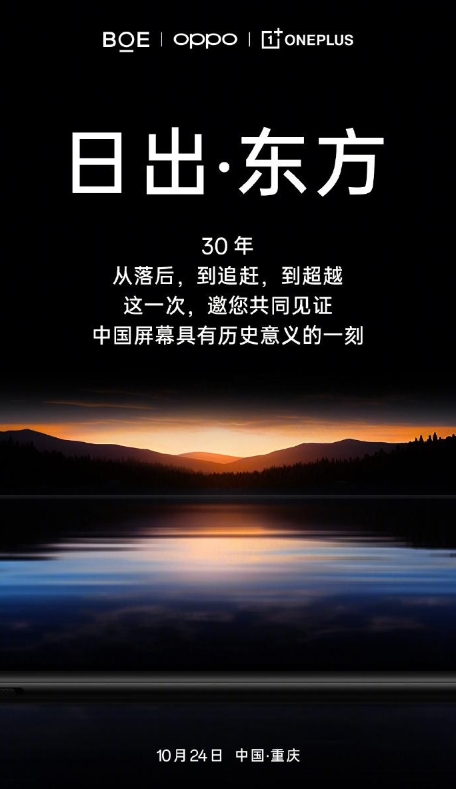 一加官方今日宣布攜手京東方,“共同打造手機屏幕的新巔峰”。雙方將于 10 月 24 日在重慶舉行發布會,預計將帶來新機的最新消息。
