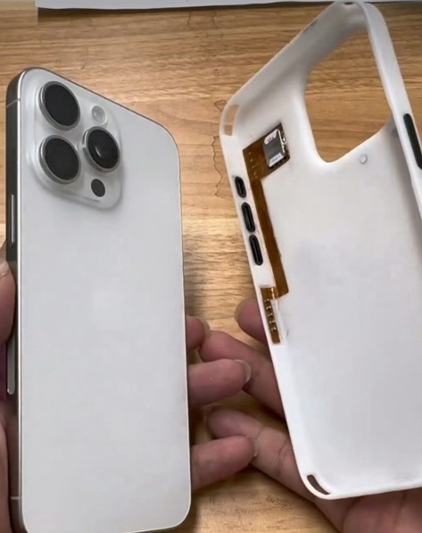 有博主曬出了華強北最新打造的外置SIM卡手機殼,在iPhone 15 Pro中框上加裝觸點,并在手機殼對應位置安裝觸點,接入SIM卡。