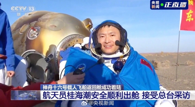 ▲ 景海鵬安全順利出艙,圖源央視新聞直播/侵刪
