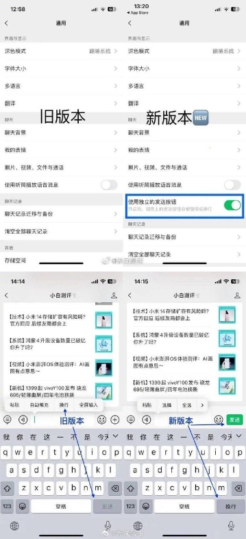 有不少用戶發現,iOS微信更新了8.0.43版本,并且新增了一個換行按鈕。