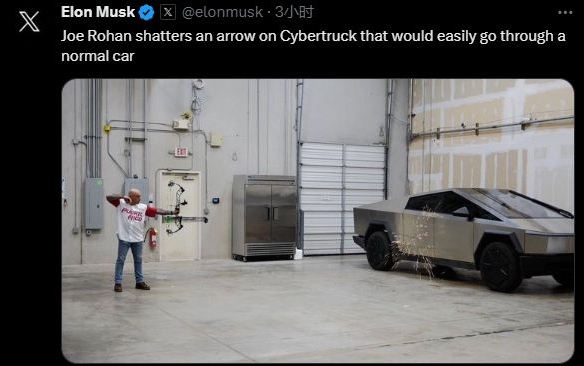 馬斯克還討論了 Cybertruck 的防護能力。之前有人在 Instagram 上分享了弓箭測試的結果,并開玩笑說“Cybertruck 也能抵擋弓箭了!”