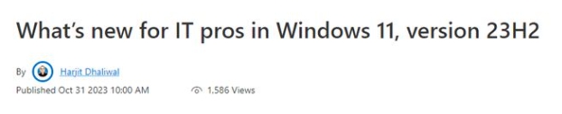 微軟在官網宣布,開始向 IT 專業人員推出 Windows 11 操作系統的重大版本更新“23H2”,其中就包含了外界期待已久的人工智能助手“Copilot”(副駕駛)。