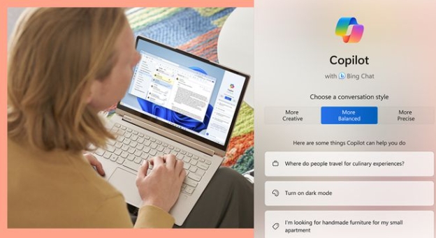 根據微軟網站上的圖片,Copilot 將作為一個側邊欄停靠在屏幕右側。用戶在任務欄中單擊 Copilot 圖標或在鍵盤上使用“Win+C”快捷鍵就可以打開程序面板,與 Windows 10 中打開 Cortana(微軟小娜)的方式一致。