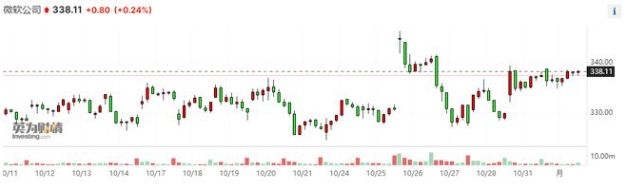 該行分析師給予微軟“增持”評級,目標價為 425 美元。截至周二收盤,微軟股價日內扭跌轉漲,報每股 338.11 美元。