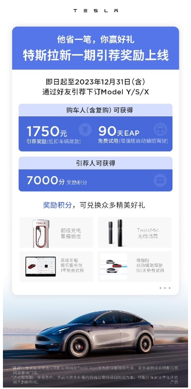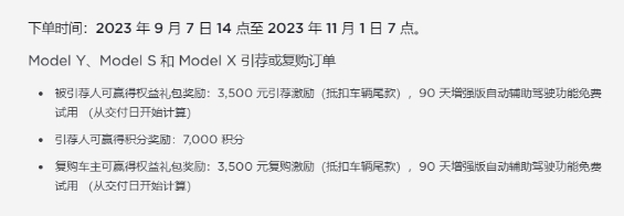 本期引薦試駕、引薦購車和復(fù)購獎勵于 2023 年 11 月 1 日 7 點開始,所有獎勵內(nèi)容將于 2023 年 12 月 31 日 24 點結(jié)束。