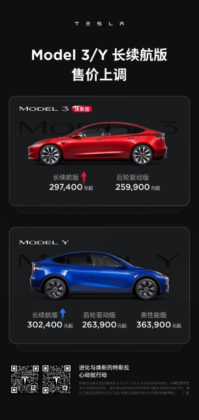 特斯拉中國(guó)宣布,Model 3 長(zhǎng)續(xù)航版及 Model Y 長(zhǎng)續(xù)航版漲價(jià)(注:不影響其他版本車(chē)型)。