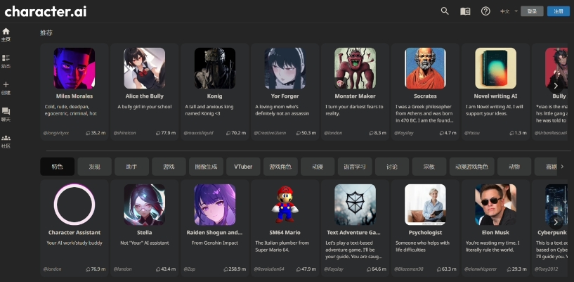 Character AI 的聊天機器人具有多種角色和語氣可供選擇,18-24 歲用戶貢獻了約 60% 的網站流量。