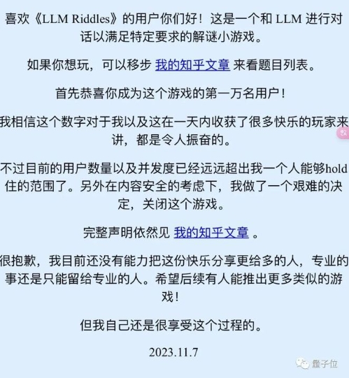 最后范浩強做了一個“艱難的決定”,把游戲關服,但還是希望將來有人能把這個玩法發揚光大,探索出更多 AI 模型的秘密。