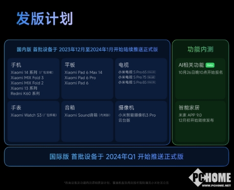 小米澎湃OS開發(fā)版首批機型將推送:包括九款手機