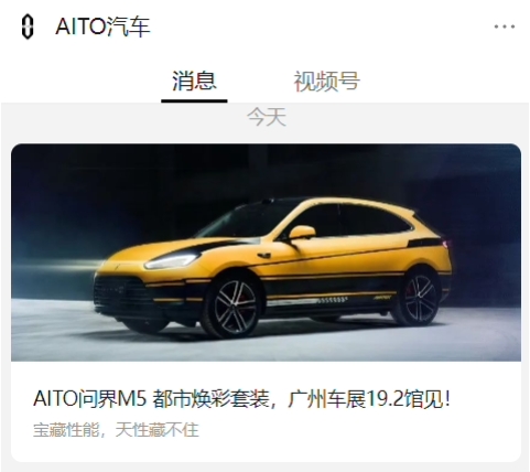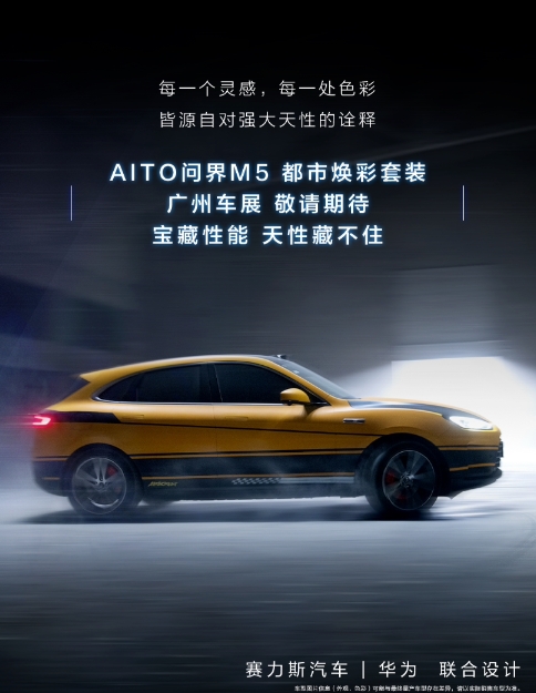 華為和賽力斯聯(lián)合設(shè)計(jì)的 AITO 問(wèn)界 M5 汽車(chē)今日公布了“都市煥彩套裝”,將于廣州車(chē)展正式發(fā)布。