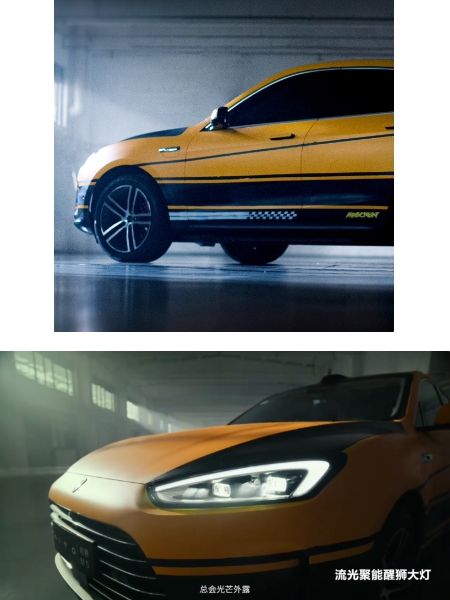 從圖中可以看到,該套裝是汽車(chē)的外觀配色內(nèi)容,采用了黃、黑線條和色塊進(jìn)行涂裝,“曙光黃”作為唯一主題色,確實(shí)看起來(lái)更加有動(dòng)感。