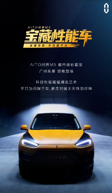 AITO 問(wèn)界 M5 汽車(chē)都市煥彩套裝亮相:黃黑配色,廣州車(chē)展發(fā)布