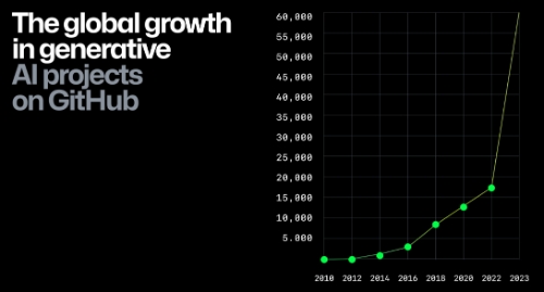 報告分析了 GitHub 上排名前 20 位的開源生成式 AI 項目,發現其中一些頂級項目都是由個人所有。生成式 AI 項目中的個人貢獻者正在全球范圍內大幅飆升,同比增長幅度達到了 148%,而生成式 AI 項目總數也同比增長 248%。