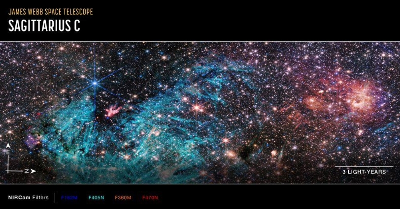 這張最新的照片,向我們展示了銀河系中心人馬座 C(Sagittarius C)區域,距離銀河系的超大質量黑洞人馬座 A * 大約 300 光年。