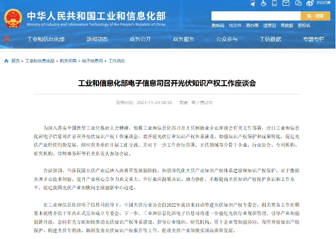 工信部:擬于年內(nèi)成立光伏知識(shí)產(chǎn)權(quán)專(zhuān)委會(huì) 10:30:17