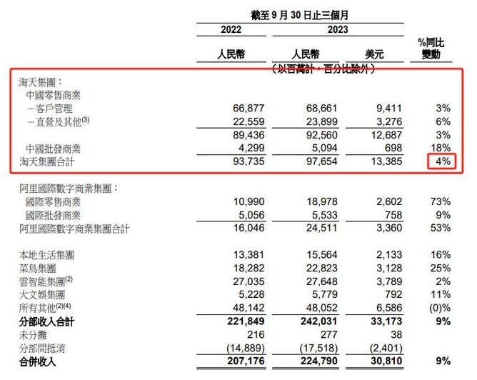 截圖自阿里巴巴財報/侵刪