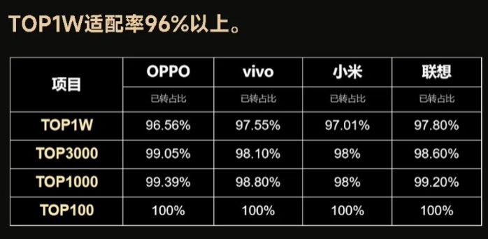 金標(biāo)聯(lián)盟:OPPO、vivo、小米、聯(lián)想應(yīng)用商店 TOP1W App 的 64 位適配率超 96%