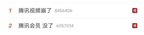 12月3日晚,“騰訊視頻崩了”和“騰訊會員沒了”兩個話題熱搜爆了!