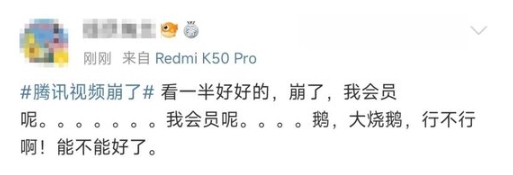 還有網友表示,騰訊視頻崩了,會員都沒了,網名也變成騰訊網友了。