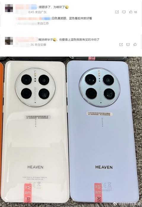 博主旺仔百事通曬出了華為Mate 50白色和藍色版工程機,這兩款配色都沒有上市。
