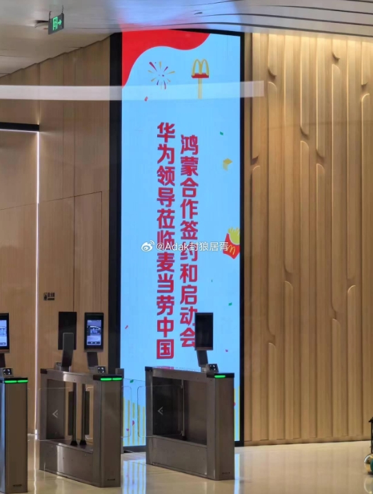 該博主分享的照片顯示,華為與麥當勞中國舉行了鴻蒙合作簽約和啟動會活動。不過,官方暫未對外公布這一消息。