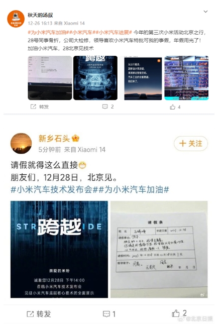 車圈春晚今天見!米粉花式請假參加小米汽車技術發布會:見證歷史性時刻