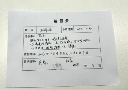 有位米粉在請假事由寫道:“朋友的大日子,我得去看看,你滿足我情緒價值,我回報公司業績價值”。