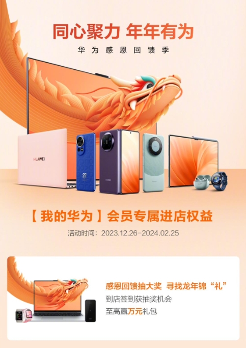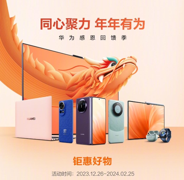 華為開啟感恩回饋季,電腦、平板、智慧屏等產品至高優(yōu)惠 2000 元;服務門店同步開啟備件 8.8 折等,活動時間 2023 年 12 月 26 日-2024 年 2 月 25 日。