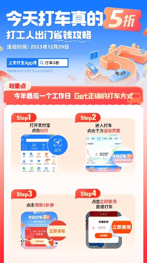 2023 最后一個工作日,支付寶推出“打車 5 折”活動 09:45:03