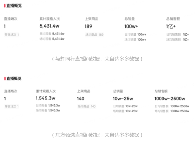 值得注意的是,同期東方甄選的數據表現欠佳。