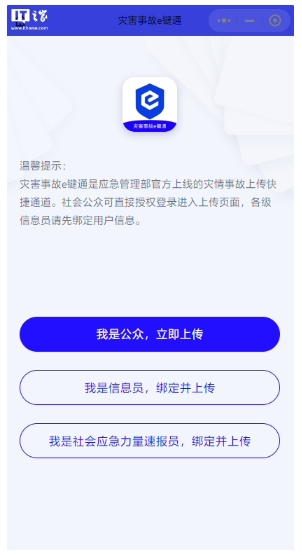 應急管理部發布“災害事故 e 鍵通”小程序:用戶可上傳照片視頻采集現場信息