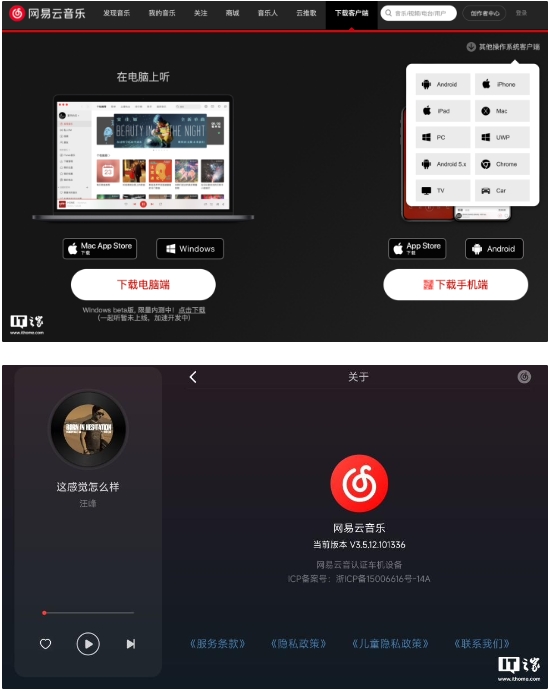 目前網(wǎng)易云音樂已經(jīng)在官網(wǎng)更新了車機(jī)版客戶端下載地址,車機(jī)版本客戶端為 APK 格式,版本號為 3.5.12.101336,體積為 37.6 MB。