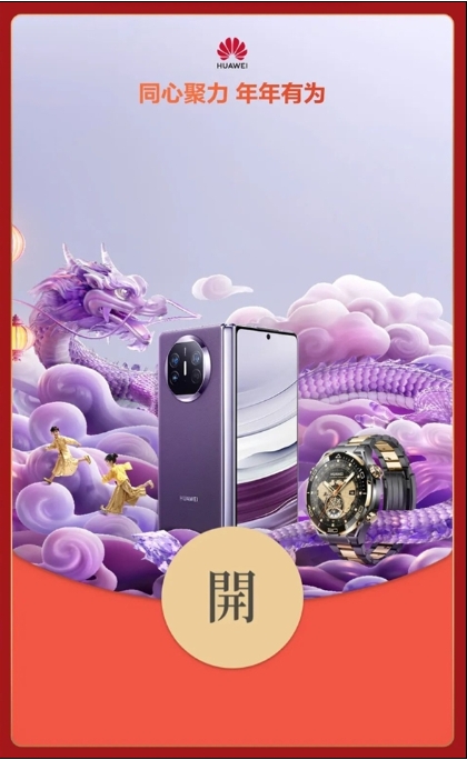 華為這次共制作了三種紅包封面,每人都能各領取一份,先到先得。