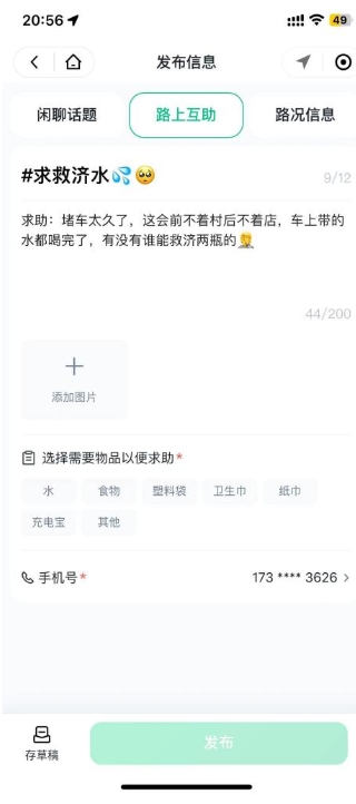 為了幫助大家解決路上的常見突發問題,順利回家過年,“春節返鄉互助”小程序上線了“路上有話說”公益互助平臺,基于騰訊地圖位置服務能力,用戶可發布求助信息、路況信息和閑聊話題。例如,春運回家堵在路上,但急需的水、食物、充電寶等物資又無法及時購買,可以通過平臺發布路上互助信息尋求同行“返鄉人”的幫助。此外,信息廣場還包括路況信息、閑聊話題等模塊,通過返鄉人的互助,幫助大家快速了解路況,及時調整行程規劃,也讓廣大網友們在回家的路上多點話聊、少點無聊。