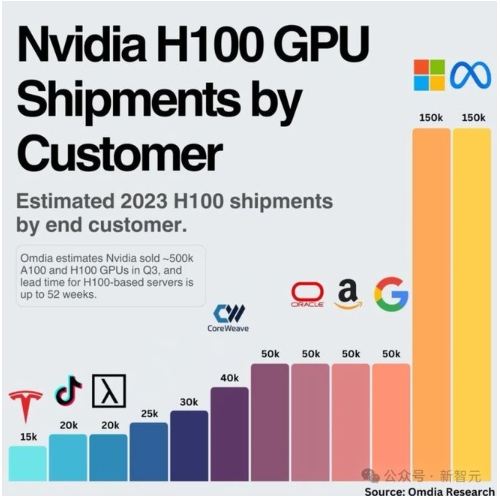 Omdia的研究數(shù)據(jù)顯示,Meta在2023年H100的出貨量為15萬塊,與微軟持平,且是其他公司出貨量的3倍。