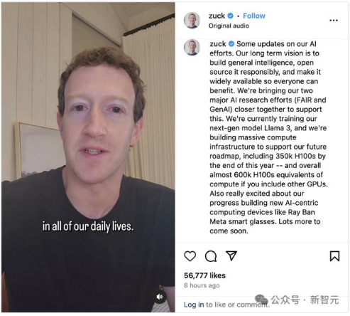小扎稱,「如果算上英偉達A100和其他AI芯片,到2024年底,Meta將擁有近60萬個GPU等效算力」。