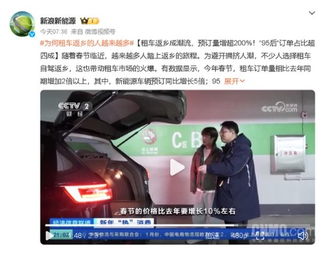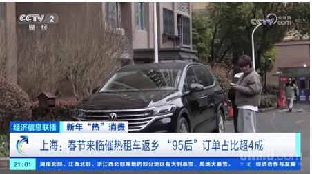 有數(shù)據(jù)顯示,今年春節(jié),租車訂單量相比去年同期增加2倍以上,其中,新能源車輛預訂同比增長5倍;95后的租車訂單占比超四成,同比增加80%;僅上海地區(qū),租車預訂量已增長近300%。這可能與上海作為國際大都市,人口流動性大,以及年輕人口比例較高有關。