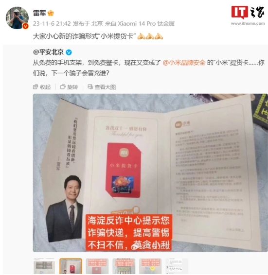 此前還出現(xiàn)過“小米提貨卡”新型詐騙形式,雷軍還提醒用戶不要上當。