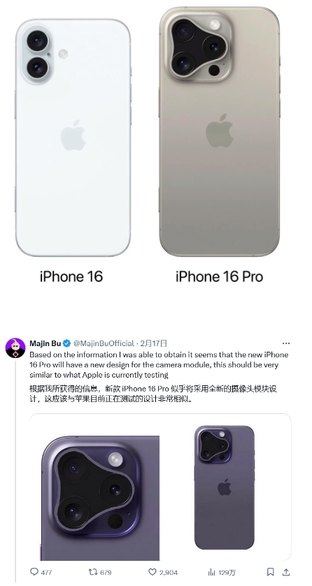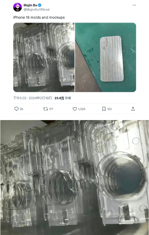 消息源 @MajinBuOfficial 的推文,發現他還分享了蘋果 iPhone 16 的壓鑄模具,從而添加了新的證據,表明 iPhone 16 基礎款采用垂直相機島設計。